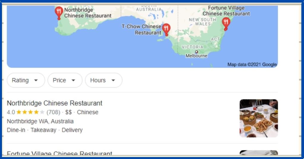 For example, when you perform a search for “Chinese restaurant in Australia”, you would expect to see a list of Chinese restaurants that are located in Australia. And that is exactly what you get with local SEO.
